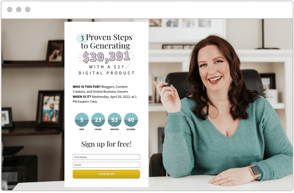 Seven years after she originally launched her Family Budget Spreadsheet that landing page is still live and generating sales. In fact, over its entire life it’s earned Monica more than $400,000, even though the product only sells for $17. It just goes to show that you don’t need a high-ticket item to make money online.